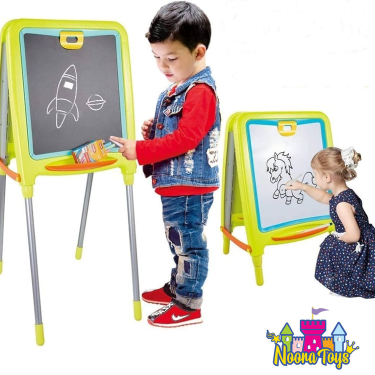 دو طرفه: تخته سیاه و سطوح نقاشی برای گچ و تخته سفید مغناطیسی با گیره. هر دو طرف را می توان به طور همزمان استفاده کرد. نقاش کوچولو بی نهایت خوشحال است