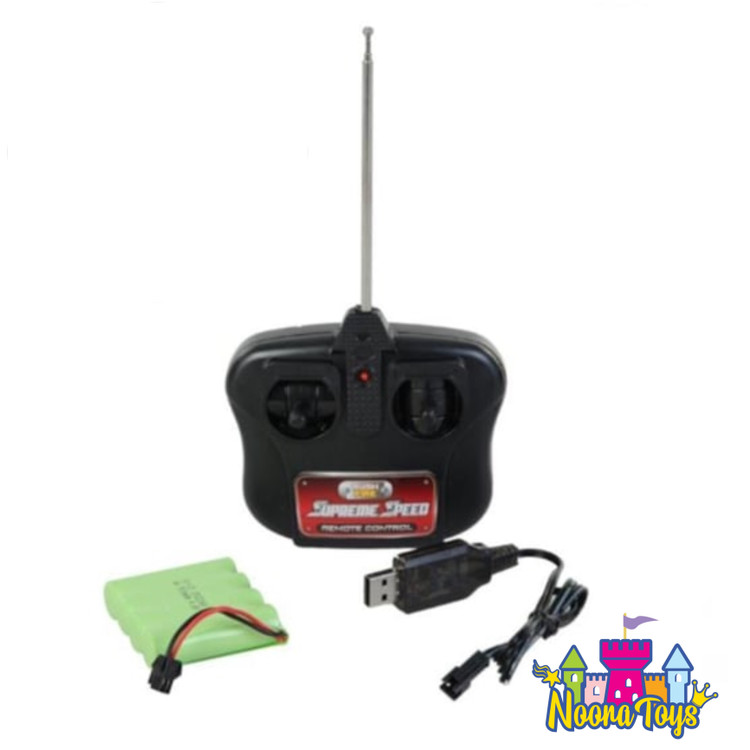 ریموت کنترل محصول دارای دو اهرم برای جهت دهی به ماشین می باشد. یک اهرم برای حرکت به جلو و عقب و اهرم دیگر برای چرخش به راست و چپ. تعداد باتری های مورد نیاز برای روشن شدن کنترل 2 عدد باتری نیم قلمی می باشد. همچنین ماشین برای حرکت دارای باتری شارژی بوده و شارژر آن نیز به همراه محصول درون جعبه قرار داده شده و نیازی به خرید جداگانه ندارد.