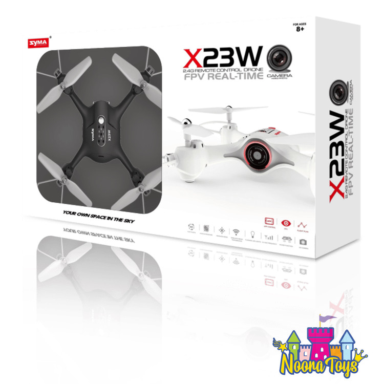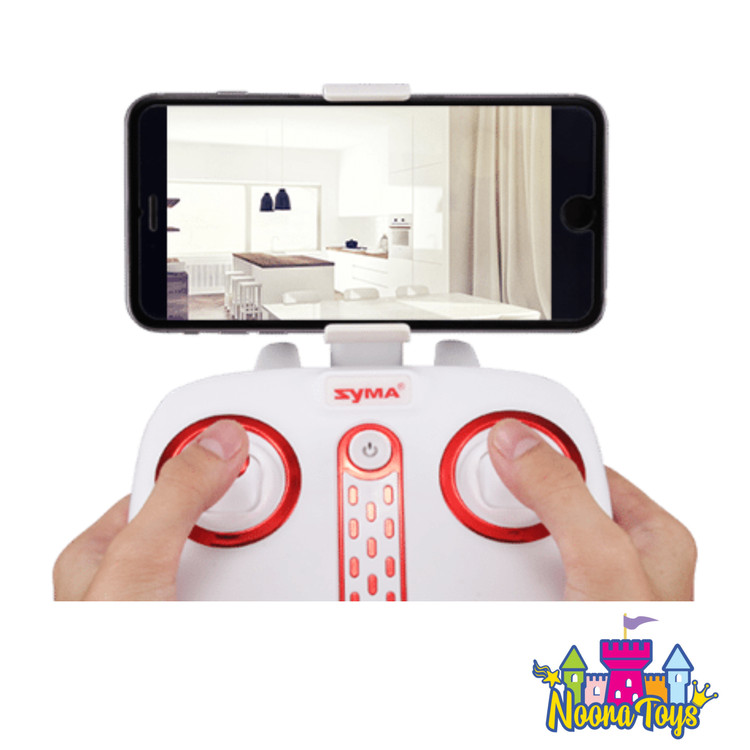 کوادکوپتر سایما مدل X23W دارای یک ریموت کنترل با فرکانس 2.4 گیگاهرتز بوده و تا فاصله 150 متر میتواند با کوادکوپتر ارتباط برقرار کند. در بخش بالایی کنترل کوادکوپتر Syma X23W یک گیره برای قرار دادن گوشی هوشمند تعبیه شده است تا بتوانید به راحتی به تصویر ارسالی دستگاه دسترسی داشته باشید.