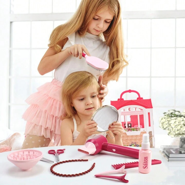 ست آرایش دخترانه لوکس سالنی بهترین تجربه آرایش مو را با ست آرایش موی لوکس تجربه کنید! این کیت زیبایی جامع شامل تمام ابزارهای ضروری برای حالت دادن خیالی مو و وانمود کردن بازی استز شانه و برس گرفته تا سشوار و اتوی واقعی مو، این مجموعه کودک شما را ساعت ها سرگرم خواهد کرد. کیت کامل استایلینگ: شامل برس مو، شانه، قیچی، بطری اسپری، سشوار ، صاف کننده و موارد دیگر. • طراحی واقعی: دارای ابزارهای یک ظاهر طراحی شده با جزئیات واقعی برای تجربه یک سالن معتبر. • بازی تعاملی: سشوار و اتو مو با جلوه های نور و صدا برای سرگرمی بیشتر ارائه می شود. • ایمن و بادوام: ساخته شده از مواد با کیفیت بالا و غیر سمی که بازی ایمن و طولانی مدت را تضمین می کند. • ست قابل حمل: دارای یک کیف شیک و محکم برای ذخیره سازی آسان و بازی در حین حرکت