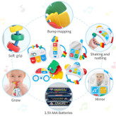 متاسفانه این کالا در حال حاضر موجود نیست. میتوانید از طریق لیست بالای صفحه، از محصولات مشابه این کالا دیدن نمایید.جغجغه در 5 شکل مختلف با رنگ بندی جذاب و امکان ایجاد صدا و موزیک از طریق لمس دکمه ها این مجموعه شامل 5 عدد جغجغه ی زیبا در شکل های مختلف می باشد. جغجغه ها به شکل گیتار، پیانو، ماشین، موبایل و یک قطعه صدادار دیگر می باشند. کلیه قطعات از پلاستیک نرم و محکم و با کیفیت خوبی ساخته شده اند و داخل یک بسته بندی جعبه ای شیک و کادویی هستندعدادی از قطعات جغجغه موزیکال 5 تکه، باتری خور بوده و دارای دکمه خاموش/روشن می باشد. این مجموعه از طراحی و رنگ بندی شاد و جذابی برای نوزادان و کودکان خردسال برخوردار است