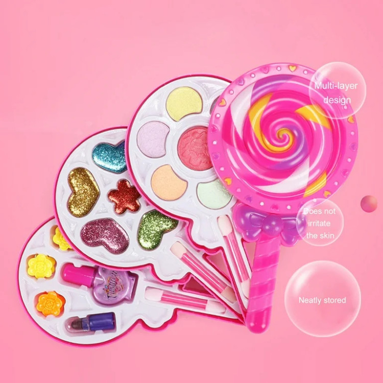 با ست آرایشی کودکانه طرح آبنبات، دنیای رنگها و زیبایی را به بازیهای کودکانه ببخشید! این محصول با طراحی خاص و چندلایهای به شکل آبنبات چوبی، نه تنها چشمگیر و دوستداشتنی است، بلکه بهراحتی باز و بسته شده و همه لوازم درون آن بهصورت منظم و مرتب نگهداری میشوند.