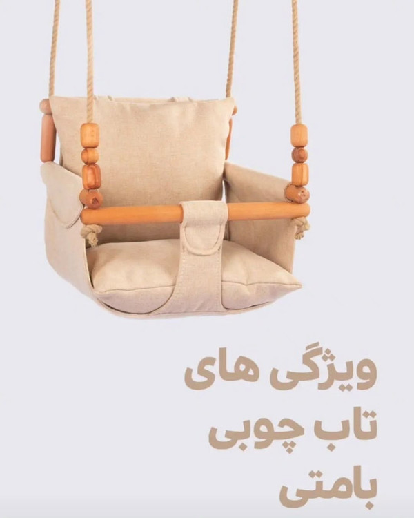 تاب کودک بامتی با بکارگیری چوب مرغوب، طناب کنفی و همچنین پارچههای با کیفیت، نشیمنگاهی راحت برای کودکتان فراهم آورده و می تواند کودک دلبندتان را ساعت ها سرگرم کندکز ثقل تاب به گونه ای طراحی شده است که بدون استفاده از کمربند، کودک در تاب آزادانه حرکت کرده و تاب به جلو یا عقب واژگون نخواهد شد، اما تست اولیه با حضور والدین الزامی می باشد.تاب با توجه به سایز و دامنه حرکت دورانی به گروههای سنی مختلفی تعلق دارد، این تاب با تحمل وزن 25 کیلوگرم برای کودکان 1 تا 6سال مناسب خواهد بود. این تاب ها به آسانی بر روی میله های بارفیکس نصب می شوند