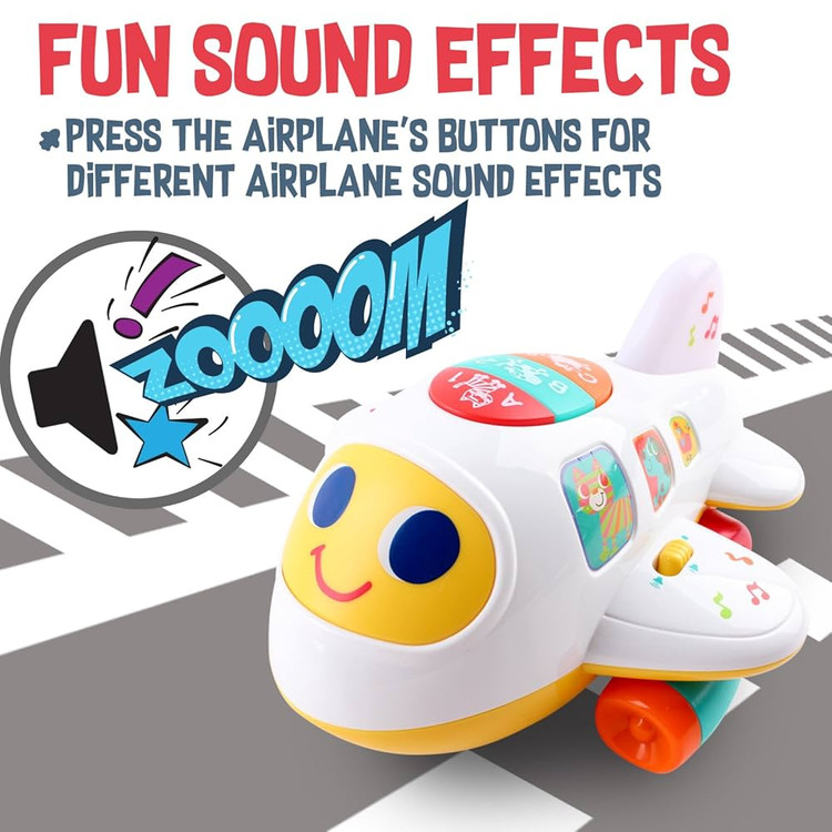 هواپیما موزیکال هولا تویز کد ۶۱۰۳ را به کودکان بالای یک سال هدیه داده و آنها را حسابی سرگرم کنید. این اسباببازی آموزشی توسط برند «هولی تویز» طراحیشده و نیاز به ۳ باتری قلمی دارد. میتوان این هواپیمای خندان را حرکت داد و مهارتهای حرکتی فرزند دلبندتان را تقویت کنید. زیرا قابلیت حرکت داشته ومی تواند به جهتهای مختلف حرکت کند با توجه به موزیکال بودنش، توجه بچهها را به خود جلب میکند. بر روی این هواپیمای سفیدرنگ اعداد و حروف انگلیسی بهصورت ابتدایی طراحیشده که میتوان آنها را به بچهها آموزش داد. علاوه براین با توجه به تنوع رنگهای استفادهشده در آن میتوان برای آموزش رنگها هم استفاده کرد. این اسباببازی دارای دو دکمه است که میتوان آن را به حالت آموزشی و یا موزیکال قرارداد. علاوه براین دارای دکمهی تنظیم صداست. بنابراین صدای آن را میتوان کنترل کرد. این بازی آموزشی علاوه بر تقویت مهارتهای حرکتی بچهها، باعث افزایش قدرت لامسه و هماهنگی میان چشم و دست آنها خواهد شد.