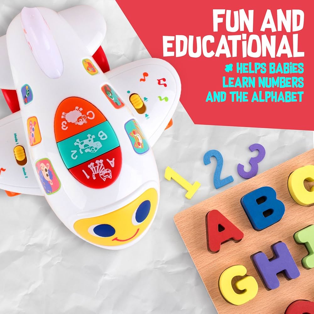 هواپیما موزیکال هولا تویز کد ۶۱۰۳ را به کودکان بالای یک سال هدیه داده و آنها را حسابی سرگرم کنید. این اسباببازی آموزشی توسط برند «هولی تویز» طراحیشده و نیاز به ۳ باتری قلمی دارد. میتوان این هواپیمای خندان را حرکت داد و مهارتهای حرکتی فرزند دلبندتان را تقویت کنید. زیرا قابلیت حرکت داشته ومی تواند به جهتهای مختلف حرکت کند با توجه به موزیکال بودنش، توجه بچهها را به خود جلب میکند. بر روی این هواپیمای سفیدرنگ اعداد و حروف انگلیسی بهصورت ابتدایی طراحیشده که میتوان آنها را به بچهها آموزش داد. علاوه براین با توجه به تنوع رنگهای استفادهشده در آن میتوان برای آموزش رنگها هم استفاده کرد. این اسباببازی دارای دو دکمه است که میتوان آن را به حالت آموزشی و یا موزیکال قرارداد. علاوه براین دارای دکمهی تنظیم صداست. بنابراین صدای آن را میتوان کنترل کرد. این بازی آموزشی علاوه بر تقویت مهارتهای حرکتی بچهها، باعث افزایش قدرت لامسه و هماهنگی میان چشم و دست آنها خواهد شد.