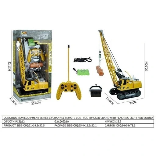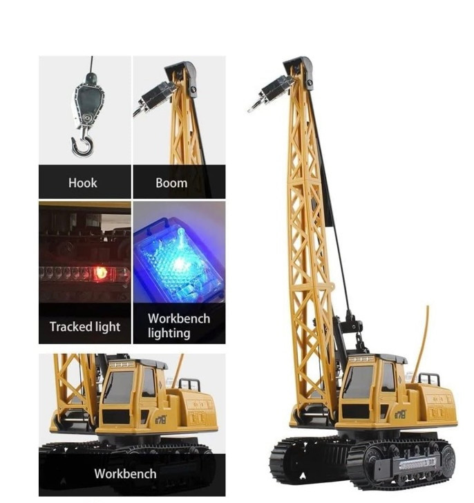 این جرثقیل کنترلی اسباب بازی ساخت و ساز با 12 عملکرد، یک اسباب بازی سرگرم کننده و واقع بینانه برای کودکان است. این جرثقیل مانند یک جرثقیل واقعی کار می کند و می تواند به جلو/عقب، به چپ/راست بچرخد، بازو را بالا و پایین کند، قلاب را بچرخاند، چراغ ها و صداها را روشن و خاموش کند و سکوی عملیاتی را 360 درجه بچرخاند.