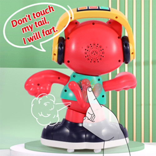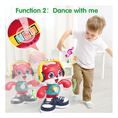 اگر حالت راه رفتن را انتخاب کرده باشید علاوه بر رقصیدن به صورت دایره ای هم حرکت میکند و هنگام رقص بازو ، گردن و چشم هایش را به طور بامزه ای تکان می دهد که برای کودکان خیلی جذاب می شود و هنگام رقصدن افکت های نوری و موسیقی پخش می کند .