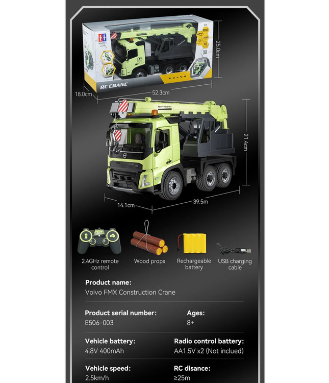 اولین ویژگی این کامیون کنترلی میتوان به شارژی بودن آن اشاره کرد- دومین ویژگی این کامیون برند بودن این اسباب بازی است که دارای لایسنس نیز از شرکت ولوو میباشد- جنس بدنه این ماشین ترکیبی از پلاستیک یا لاک با کیفیت بالاست و جنس لاستیک ها از لاستیک نرم و قابل انعطاف با کیفیت بالا ساخته شده است-خود ماشین به وسیله کنترل هدایت میشود به صورت جلو و عقب و چپ و راست و قسمت جرثقیل نیز با کنترل هدایت میشود–با هر بار شارژ کردن کامل باتری ها میتوانید حداقل 10 تا 15 دقیقه مفید از این کامیون استفاده کنید-این اسباب بازی هدیه بسیار مناسب برای کودکان بالای 6 سال و حتی برای رنج سنی بالا نیز مناسب است چرا که طراحی جذاب این کامیون برای علاقه مندان به ماشین های راهسازی و کامیون نیز مورد توجه هست و میتواند هدیه خوبی برای این دسته افراد و کودکان و نوجوانان باشد.