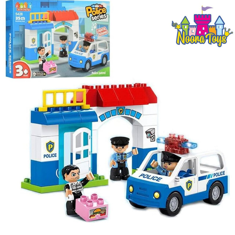 لگو درشت پلیس برند JDLT کد 5428 – تجربهای هیجانانگیز از بازیهای خلاقانه برای کودکان تعداد قطعات: 35 قطعه درشت مناسب برای کودکان سه مینی فیگور: شامل شخصیتهای پلیس برای داستانپردازی جذاب لگو طرح ایستگاه پلیس و ماشین پلیس: امکان ساخت و خلق یک ایستگاه پلیس کامل ماشین پلیس با نور و صدا: افزودن هیجان به بازی با نورها و صداها مناسب برای سنین 3 سال به بالا